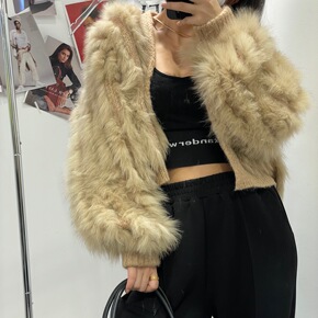 2021年冬韩版仿狐狸毛皮草修身小外套海宁仿皮草厂...