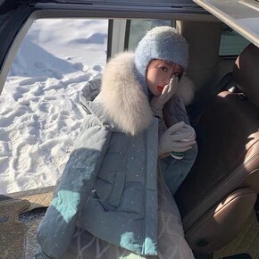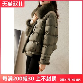 真狐狸毛领围脖羽绒服女2021冬季新款圆领宽松显瘦...