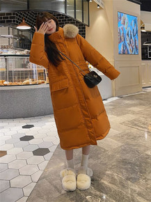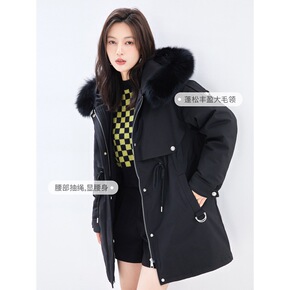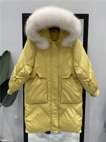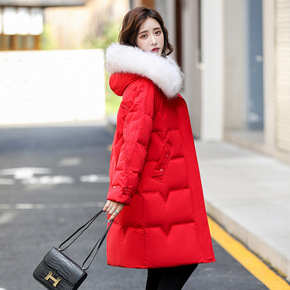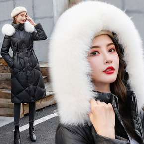 女装批发狐狸毛大毛领羽绒服2021冬季新款过膝长款...