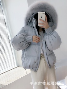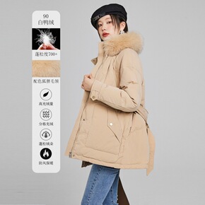 深圳南油高端精品秋冬90绒狐狸毛大毛领收腰显瘦连帽...