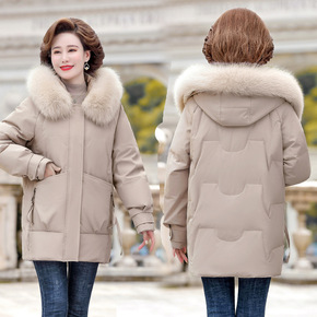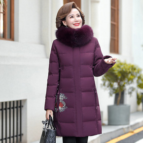 中老年羽绒服女中长款加厚大码妈妈装外套女装狐狸毛领...