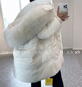 h.h冬季新款狐狸大毛领羽绒服女加厚纯色白鸭绒宽松...