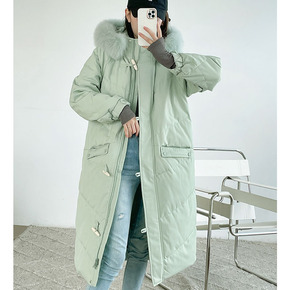 90白鸭绒2021年新款派克羽绒服女长款加厚狐狸大...
