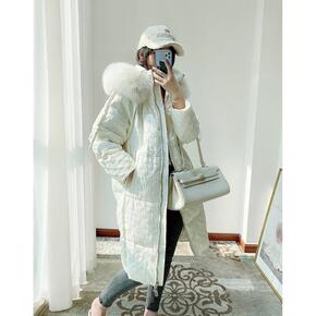 2021年冬季新款韩版羽绒服女中长款白鸭绒真狐狸毛...