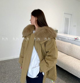 h.h 中长款羽绒服女冬季新狐狸大毛领连帽韩版加厚...