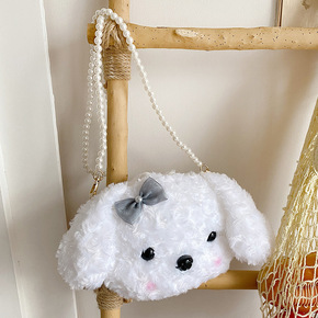 新款2021年白色大耳狗狗可爱包包女生生日礼物珍珠...