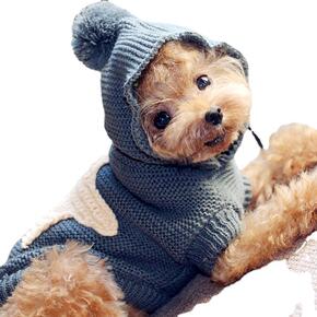 泰迪比熊母狗狗高领运动卫衣撞色四脚衣包肚护肚子毛圈...