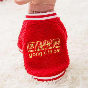 网红秋冬宠物狗狗猫咪衣服大红大吉大利新年过年喜庆加...