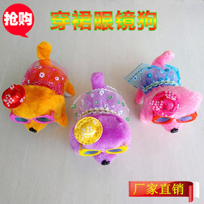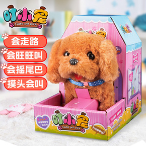 儿童穿裙戴帽子眼镜狗会走路会叫电子倒退狗智能毛绒玩...