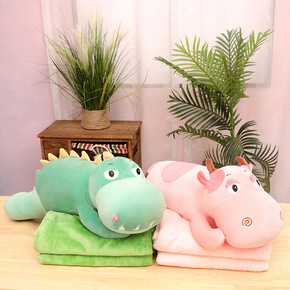 卡通动物抱枕被子两用午休睡觉枕头沙发空调毯子毛绒玩...