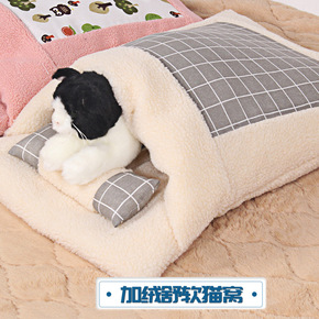 夏季宠物窝清新格子方窝中小型犬狗床四季开放式猫咪窝...