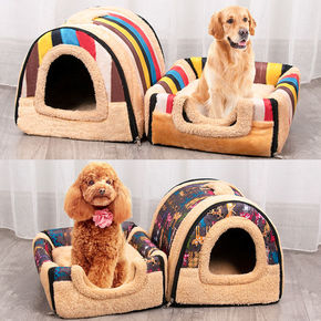 狗窝冬天保暖可拆洗房子型泰迪狗窝四季通用猫窝大型犬...
