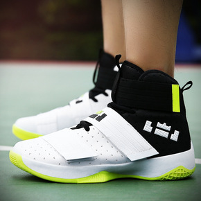 魔术贴篮球鞋男青少年初中学生跑步战靴网面透气运动体...