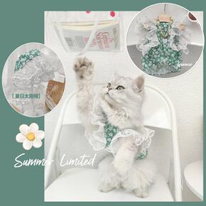 ins宠物猫咪狗狗春夏薄款碎花吊带裙蕾丝飞袖短款宠...