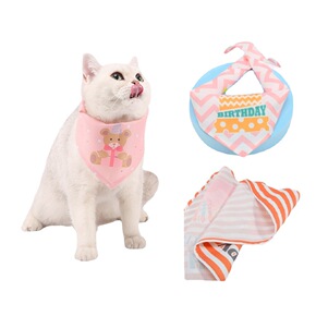 厂家直供亚马逊爆款生日狗狗口水巾 斜纹涤纶猫咪围脖...