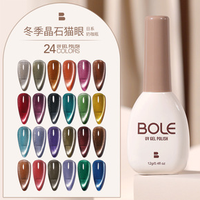 BOLE冬季晶石猫眼胶奶茶甲油胶2022年新款红色...