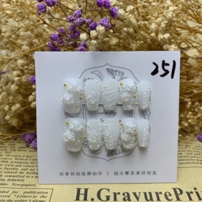 纯手工光疗美甲白色系石膏胶山茶花穿戴甲成品贴片...