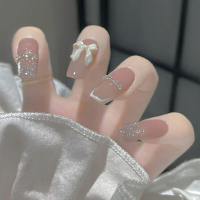 栩梦蝶Z-109短T蝶链假指甲短T跨境粉色手工光疗...