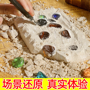 儿童寻宝考古找宝石玩具挖宝藏水晶挖掘矿石化石女孩男...