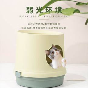 猫砂盆 全封闭防外溅大号加厚半封闭式隔臭顶入式幼猫...