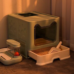 猫砂盆全封闭下进上出 除臭防外溅半猫咪顶入式方糖懒...