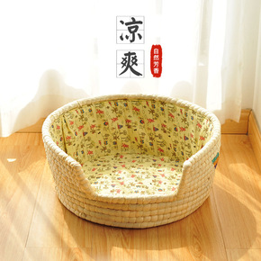 夏季新款宠物凉席垫窝 亚麻布透气猫狗窝 四季通用藤...