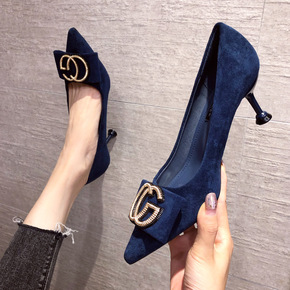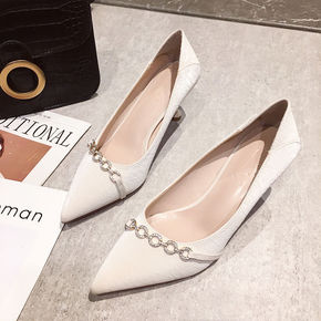 2020年秋冬新款少女网红法式高跟鞋女细跟中跟尖头...