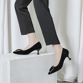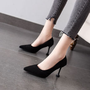 高跟鞋女粗跟2021春秋新款韩版学生尖头浅口时尚绒...