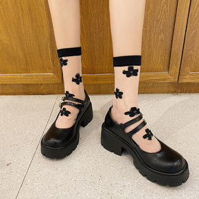 黑色高方头女2020新款法式少女细跟软皮单鞋秋冬季...
