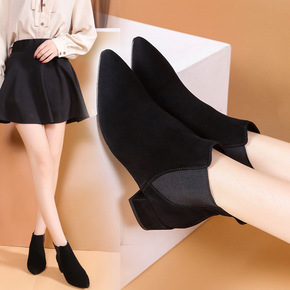 2021秋冬新款尖头英伦简约短靴女时尚马丁靴平底套...