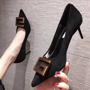 高跟鞋女细跟尖头2021春秋新款韩版黑色百搭性感女...