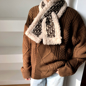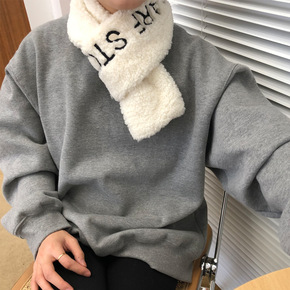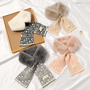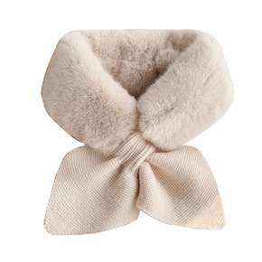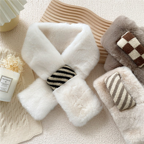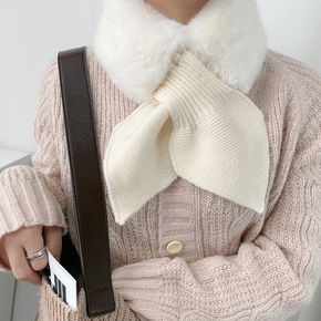 韩国ins秋冬仿兔毛针织拼接交叉围脖女冬季甜美百搭...