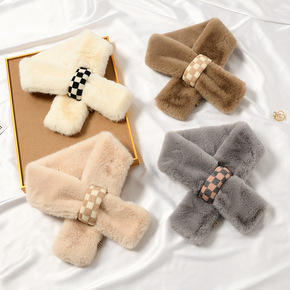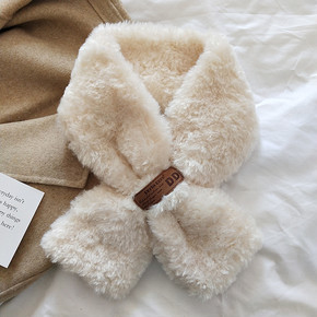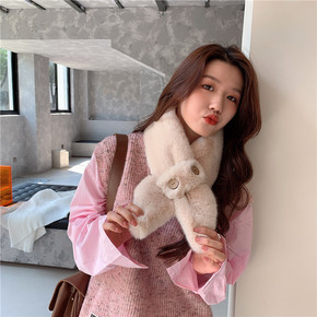 仿獭兔毛毛绒小围巾女韩版可爱百搭秋冬季交叉围脖网红...