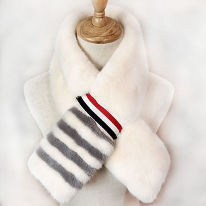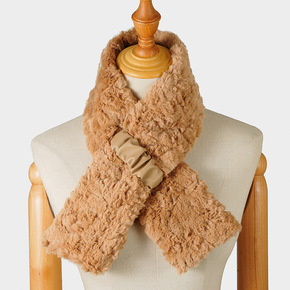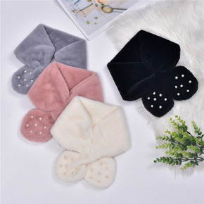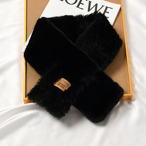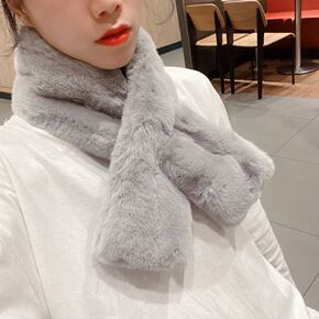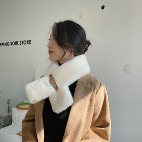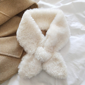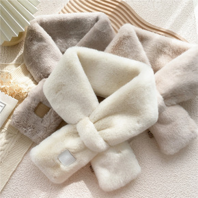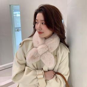 韩国chic风加厚纯色毛毛围脖冬季保暖仿獭兔毛交叉...