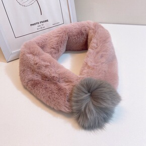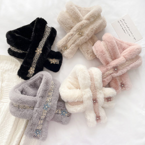 韩版围巾女秋冬季仿獭兔毛学生可爱小花百搭毛绒加厚保...