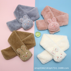 秋冬天卡通围巾韩版毛绒兔子保暖围巾出游女童交叉围脖...