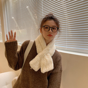 新款交叉围巾女冬季韩版百搭仿兔毛围脖日系加厚保暖毛...