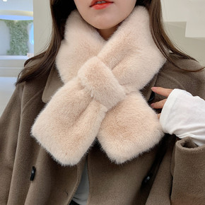 软糯韩国chic风加厚纯色毛毛围脖保暖仿獭兔毛交叉...