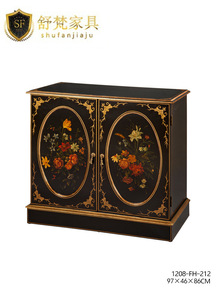 法式欧式奢华彩绘花卉装饰柜全实木贴金箔别墅客厅玄关...