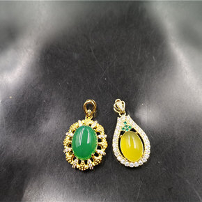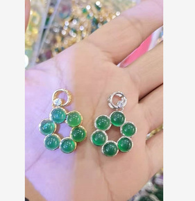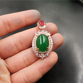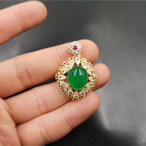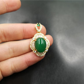 万玉批发 925亮金镶嵌绿玉髓蛋形吊坠 女款碧绿色...