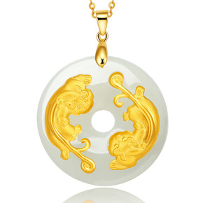 金镶玉平安扣吊坠款和田玉双貔貅项链玉坠如意转运男女...
