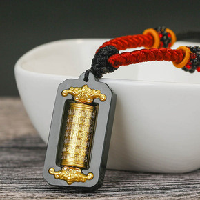 金镶玉 和田墨玉足金转运筒吊坠 观音佛百福心经直播...