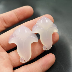 万玉批发 手工雕刻白玉髓玛瑙玉兰花吊坠 冰白色玉髓...