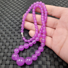 石玉缘玉石项链葡萄紫圆珠项链石英岩玉塔链玉项链锁骨...