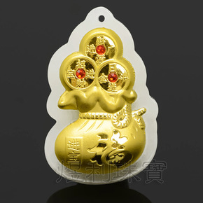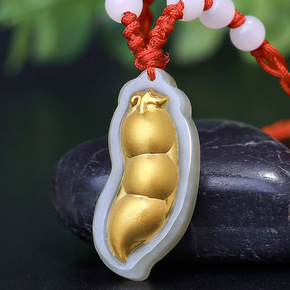 厂家金镶玉和田玉四季豆足金吊坠开运吉祥物玉石项坠金...