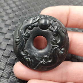 石玉缘玉石挂件新疆和田墨玉双龙壁挂件墨绿蛇纹石玉吊...