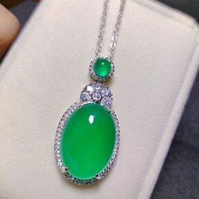 玛瑙巷 925银镶嵌绿玉髓蛋形吊坠 新款翠绿色玛瑙...