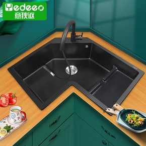 意大利进口意狄讴转角水槽9780SY厨房洗菜盆L型...