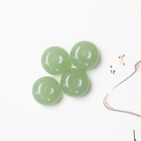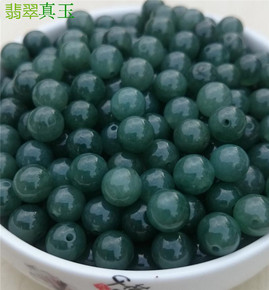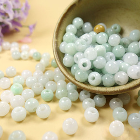 新疆和田玉散珠 青白玉园珠子手链项链l散珠湖水绿半...