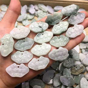 玉器翡翠 缅甸玉器A货长命百岁锁翡翠吊坠玉佩翡翠佩...